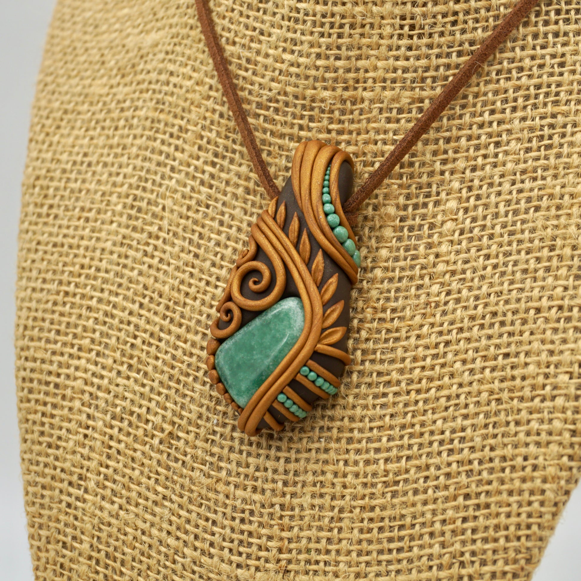 Beautiful Aventurine wrapped in hand sculpted polymer clay filigree.
