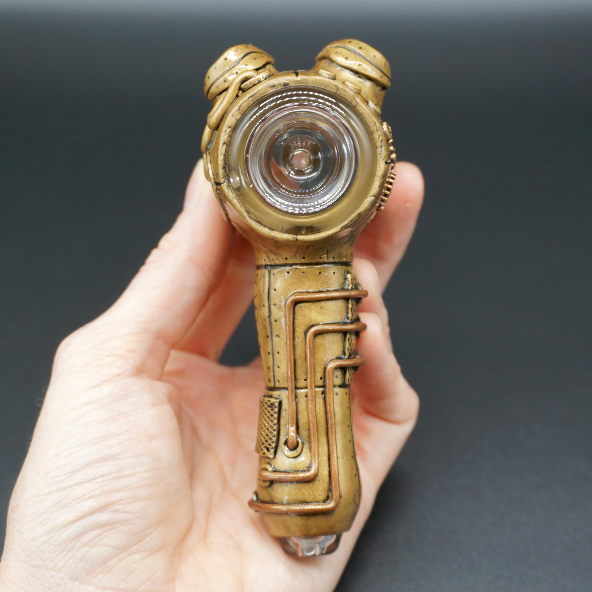 Handmade polymer clay sculpture on American made glass hammer. The eyes are made with the glass color "Karmaline".