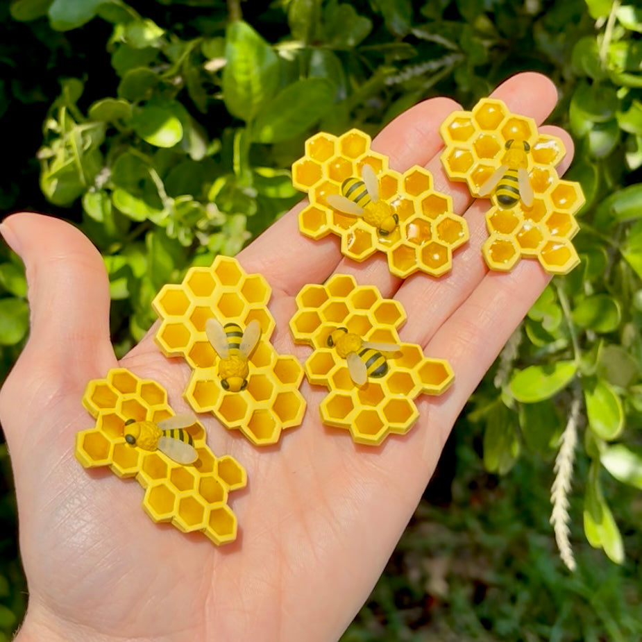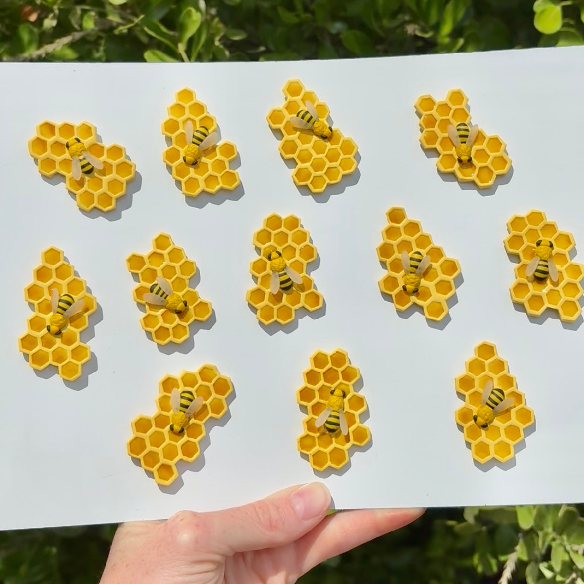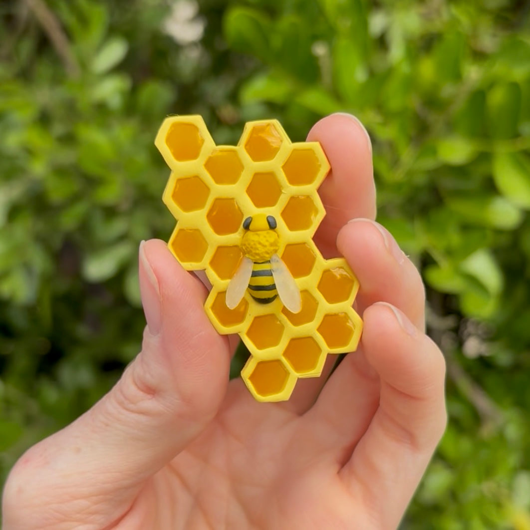 Please note: magnets are sent at random. Each one is completely handmade without molds, so no two bees are exactly alike! The honeycomb design you receive will be a unique surprise.