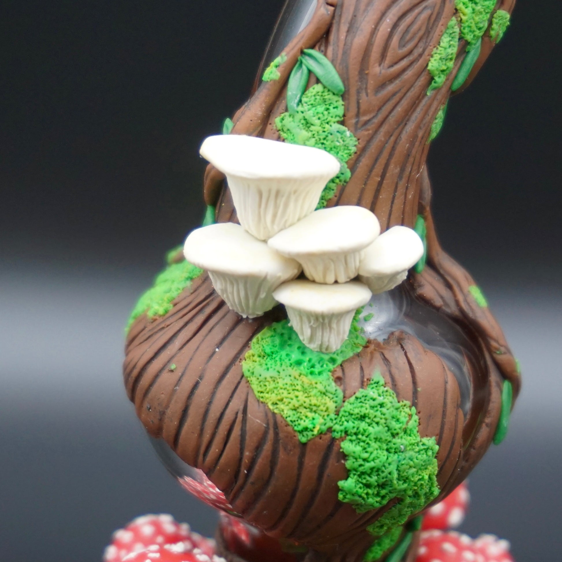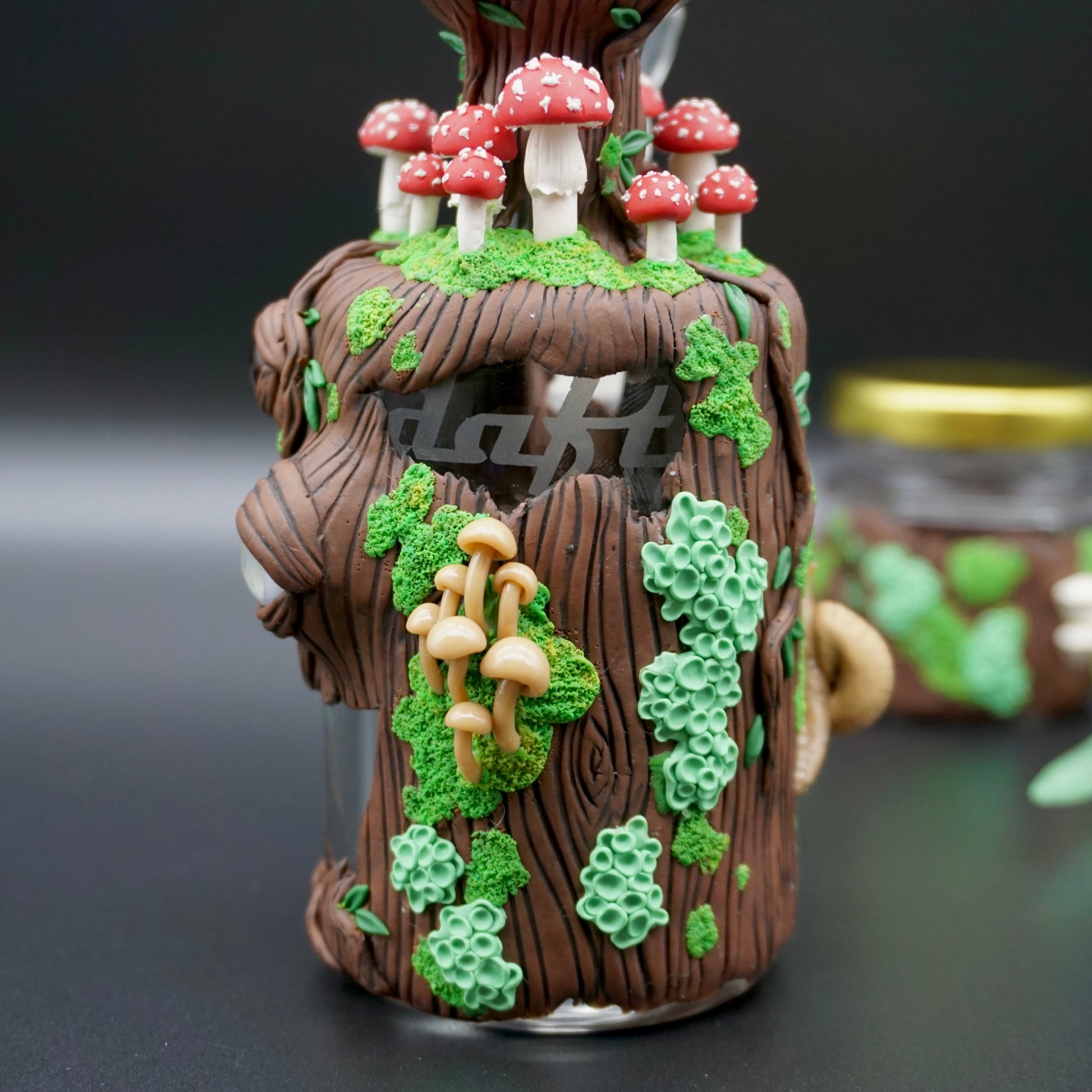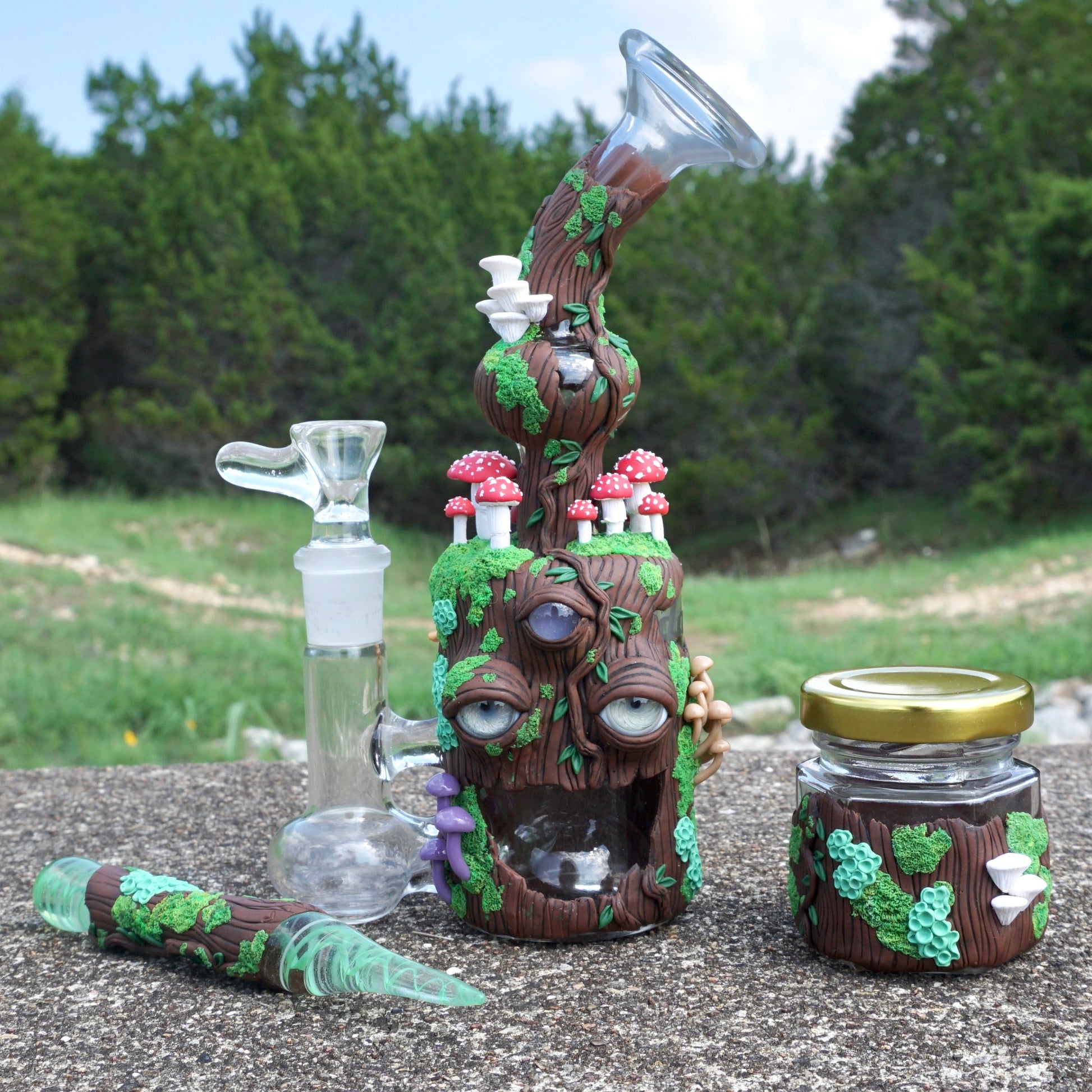 Oom has grown every type of fungi you can imagine on his wooden body over many centuries. Psilocybin brought him the wisdom of the universe and opened his third eye. Once he gained sacred knowledge, his Amanita Muscaria crown grew in and will remain until the end of days~