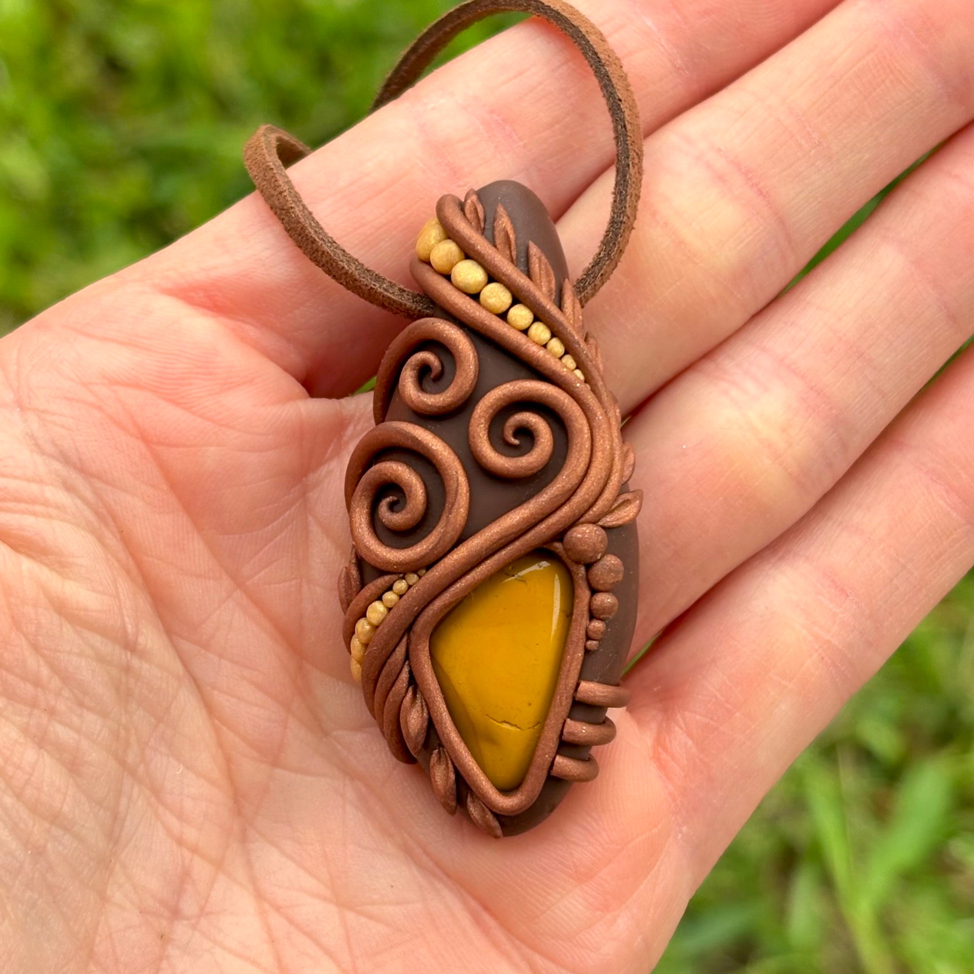 Yellow Jasper wrapped in polymer clay. Comes with suede cord.